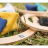 - Hra obsahuje: 3 dřevěné kroužky, 12 látkových sáčků (6 x 6 x 6 cm), 1 provázek (3 metry), bavlněný pytlík.