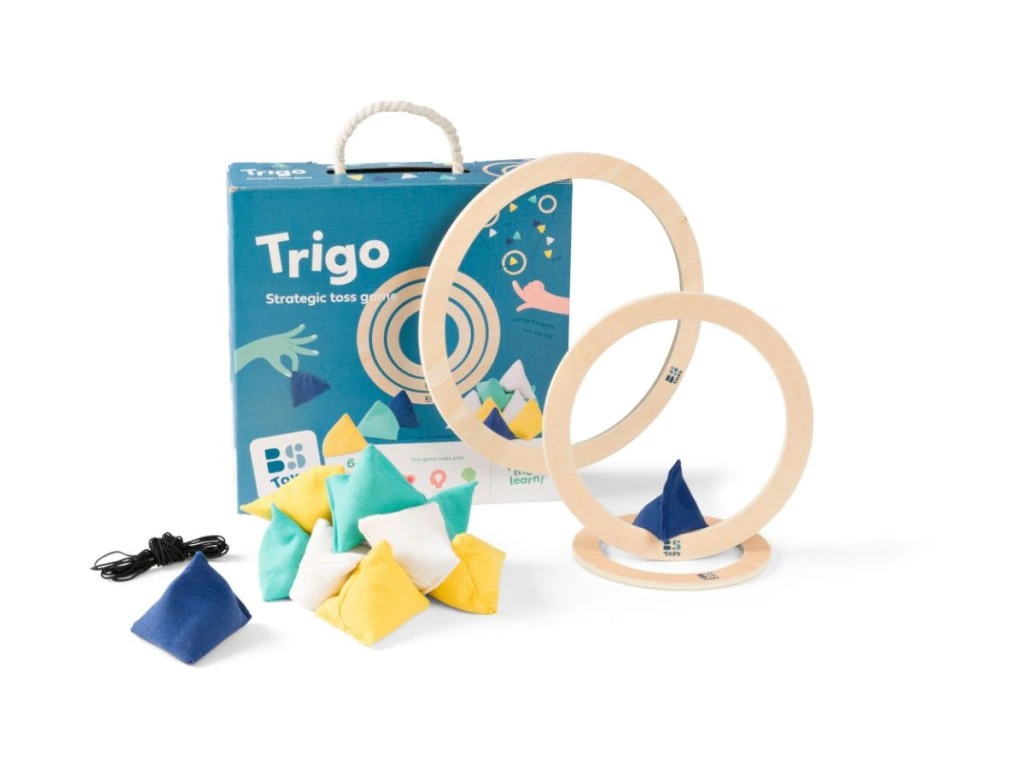 Cílem hry TRIGO je umístit co nejvíce pytlíků do trojúhelníku, který je vytvořený třemi dřevěnými kruhy. Pokud hráč trefí kruh, lze s ním pohnout, takže se celá hra může rychle změnit. Ideální hra na zahradu s kamarády.