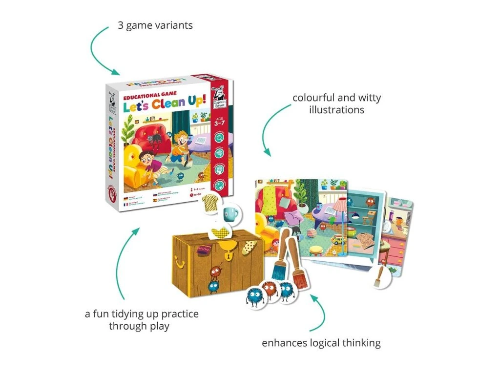 Úklidová výzva od Captain Smart je svižná a zábavná hra pro děti od 3 let, ve které zastavují neposedné prachové koule dřív, než se dostanou k jejich oblíbeným věcem. Při hře se učí třídit předměty podle barvy, velikosti nebo typu a zároveň rozvíjejí paměť, postřeh a logické myšlení. Hra podporuje i koordinaci oko–ruka a soustředění. Úklid se tak promění v zábavné dobrodružství, které děti opravdu baví. Je určena pro 1 až 4 hráče a trvá 10–20 minut.