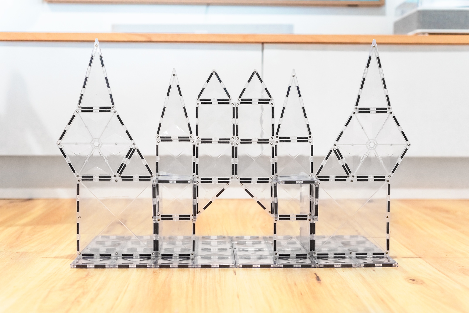 - Rozvíjí logické myšlení a prostorovou představivost – práce s různými tvary (čtverce, trojúhelníky, šestiúhelníky) pomáhá pochopit vztahy mezi tvary, prostor a stabilitu.