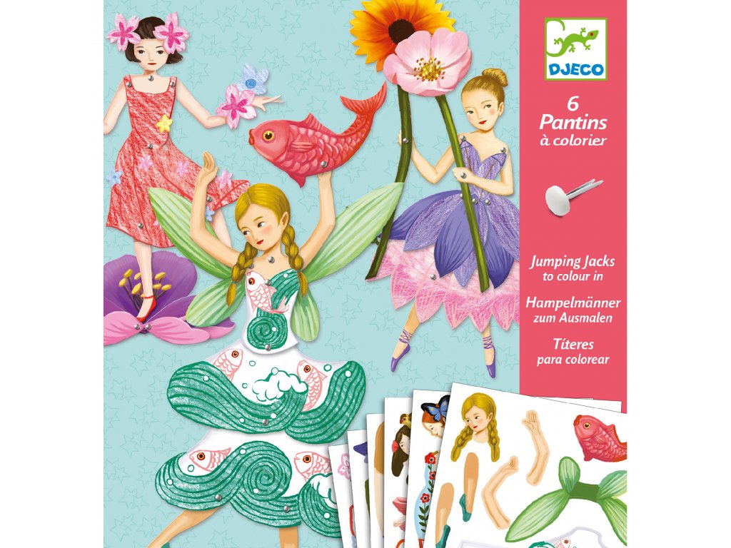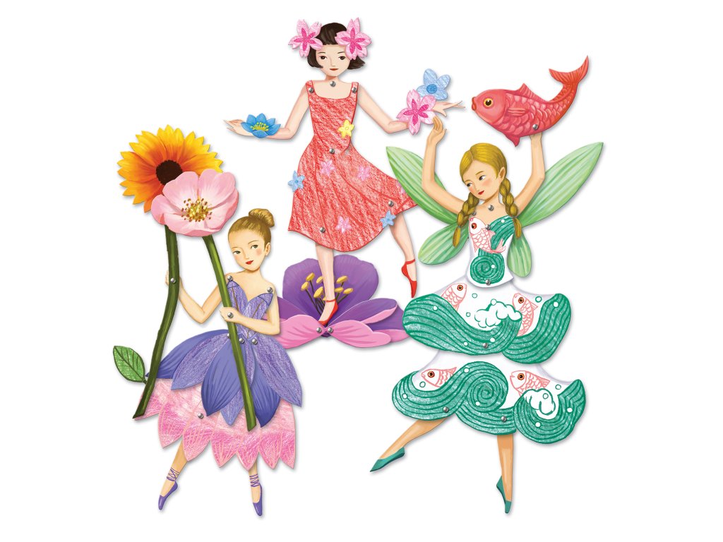 Kreativní sada pro děti od 6 let – vybarvi a sestav 6 elegantních víl s pohyblivými klouby, které pak mohou dělat kouzelné pohyby a ožít v dětských příbězích.
