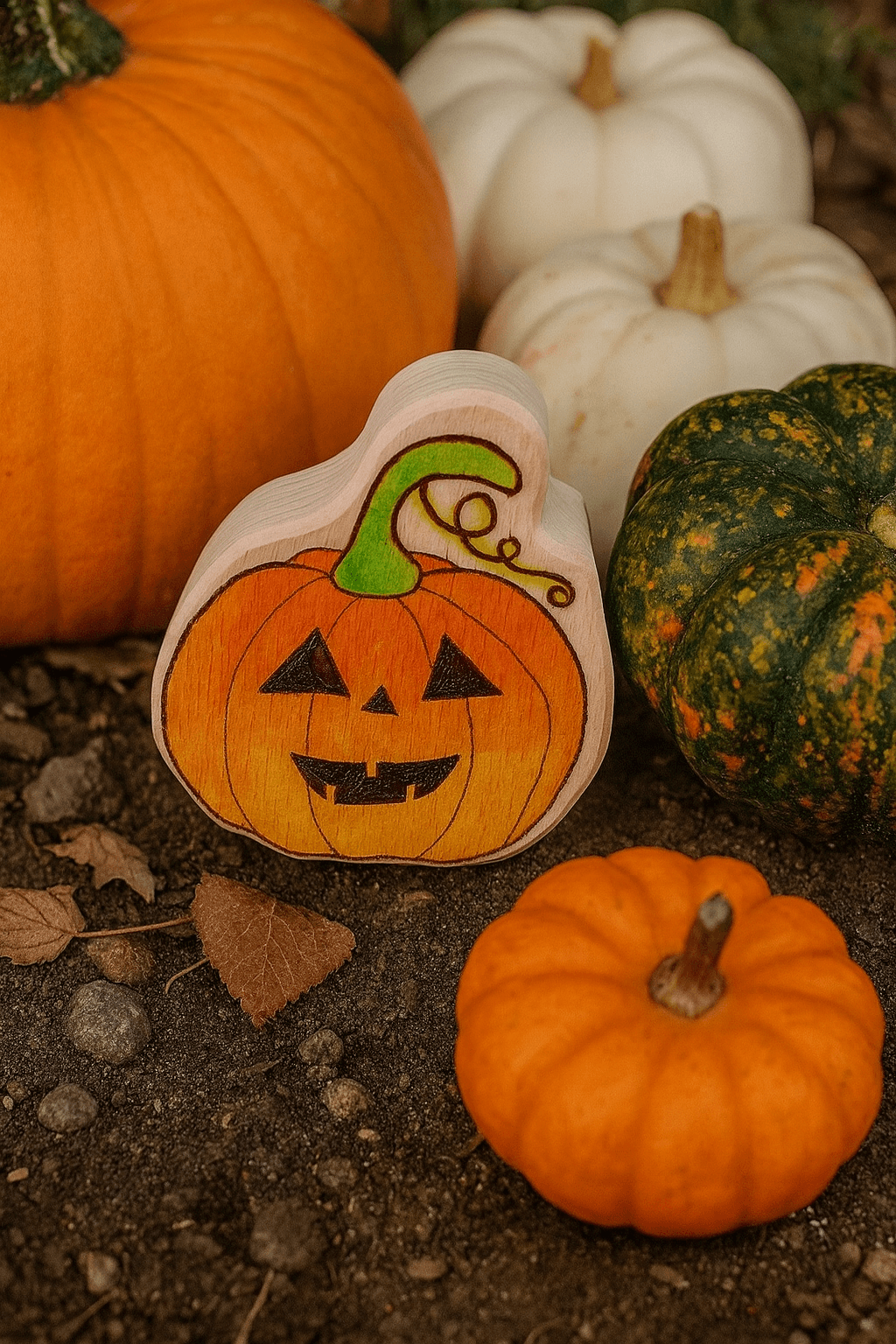- 1× malovaná kostka (bez sklíčka) s halloweenským motivem dýně