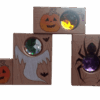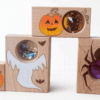- 3× kuk-kostka (průhledné „sklíčko“) – motivy: pavouček (fialová), dýně (zlatá), duch (bílá)