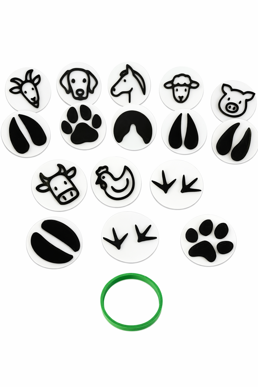 Sada 16 stop a siluet zvířat z lesa z materiálu PLA udělá radost nejen při práci se samotvrdnoucí hmotou, ale i při práci s modelovací hmotou. Pomohou Vám při tréninku jemné motoriky a můžete je použít i jako součást smyslového hraní na témata spojená s domácími zvířátky, zvířaty, farmou, …