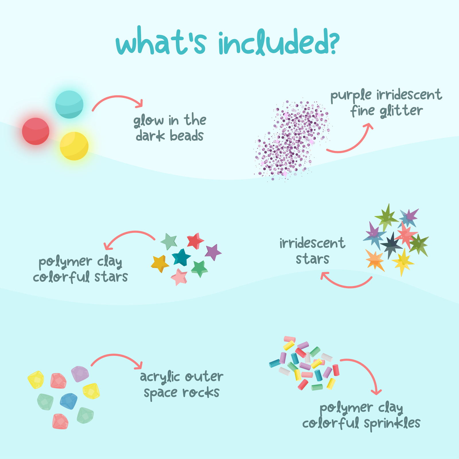 Fun Fillers jsou tematické sady senzorických doplňků navržené tak, aby obohatily hru s vodou, senzorickými lahvemi Glo Pals i dalšími kreativními aktivitami. Jsou perfektním způsobem, jak okamžitě proměnit každou senzorickou hru a dodat jí úplně nový rozměr! Každá sada obsahuje pečlivě vybrané doplňky v daném motivu, které vylepšují senzorické lahve Glo Pals a podporují objevování barev, textur a pohybu ještě více vzrušujícím způsobem.
