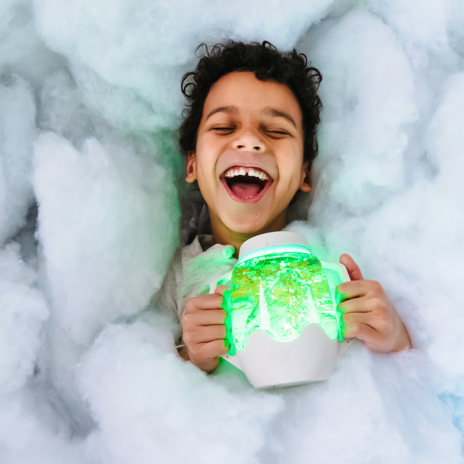 Sklenici nemusíte úplně naplnit. Nejpříjemnější zážitek pochází z pozorování, jak senzorické doplňky plavou na vodě nebo klesají ke dnu. Zkuste zatřást sklenicí, abyste vytvořili vlny a vířící vodu. Jste připraveni hru ukončit? Jednoduše otočte sklenici dnem vzhůru 🙂 Tím přestanete svítící efekt.