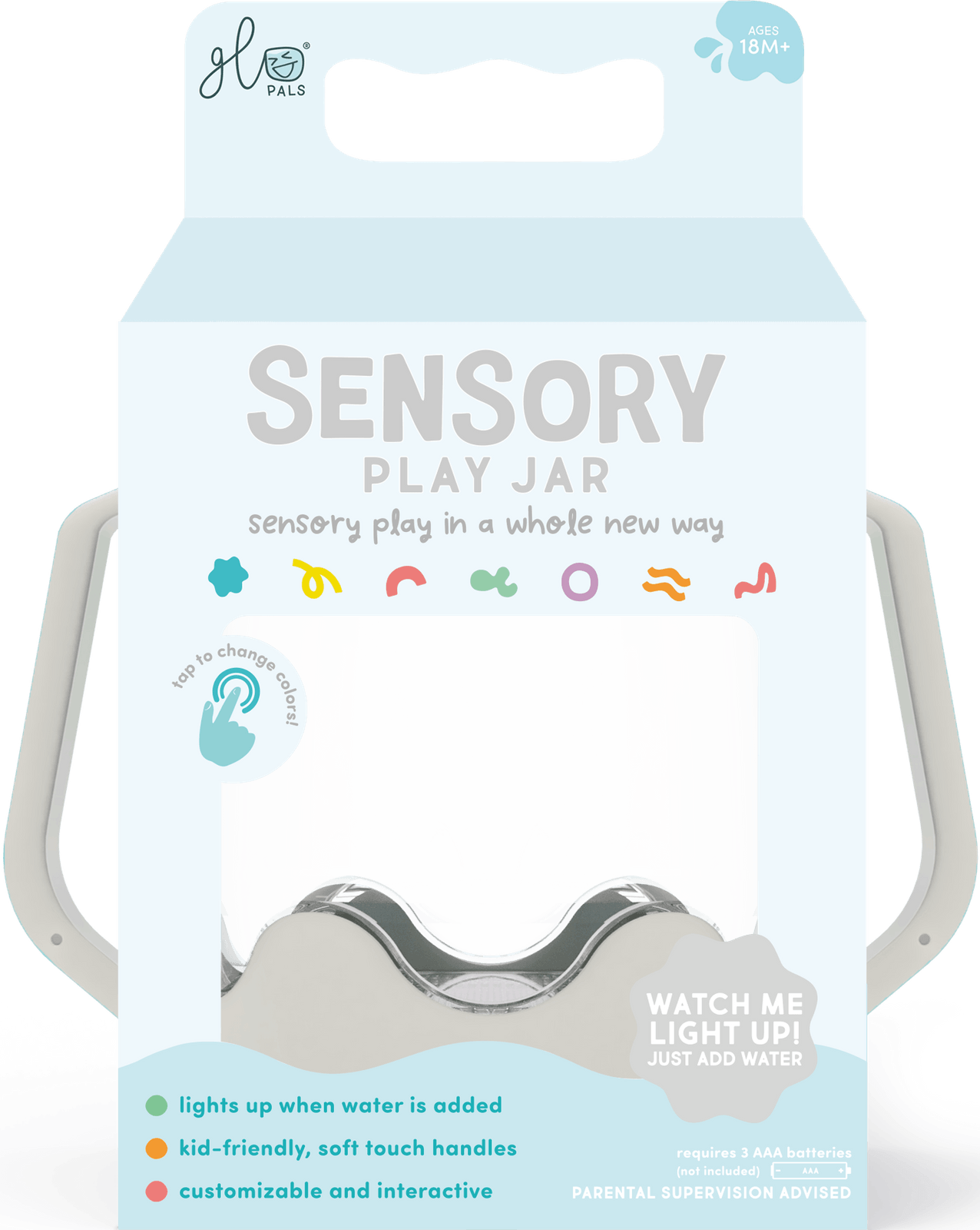 Senzorické lahve Glo Pals nabízejí víc než jen zábavu! Měnící se světlé barvy vaše dítě uchvátí, zatímco sledování plovoucích prvků ve vodě je uklidní.