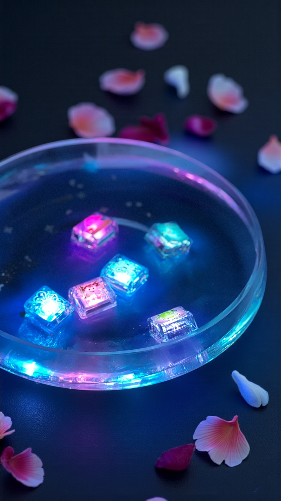 Uvnitř každé kostky se nachází LED světýlko a tři zabudované knoflíkové baterie, které se aktivují při kontaktu s vodou a vytvářejí kouzelný světelný efekt. Pečlivě navržené ultrazvukové dvojité těsnění splňuje nejvyšší bezpečnostní standardy a poskytuje dokonalou ochranu malým uživatelům.