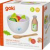 „Uvař si svůj první salát!“ Vitalbowl od GOKI je bohatá sada dřevěných a filcových surovin, se kterými děti připraví nekonečně mnoho zdravých kombinací. Set obsahuje misku (výška cca 8,2 cm, Ø 13 cm), dřevěnou lžíci, lahvičku na dresink a směs realistických ingrediencí – filcové listy salátu a další „pochoutky“ jako okurka, rajče, cibule, paprika či vejce. Celkem 24 dílů pro spoustu fantazijního vaření v kuchyňce i obchůdku. Věk 3+.