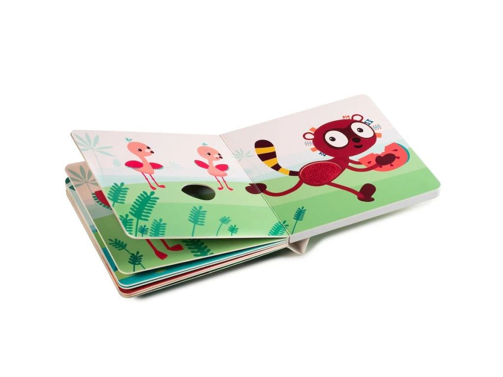 Objevujte spolu se zvířecí partou džungli plnou zvuků a dotyků. Děti stisknou „kožíšek“ zvířátka a ozve se jeho zvuk, takže z listování je rázem smyslové dobrodružství. Vyprávějte si vlastní příběhy, pojmenovávejte zvířata a zkoušejte je poznat jen podle toho, co slyšíte – knížka přirozeně rozvíjí sluch, hmat, představivost i slovní zásobu. Doporučeno zhruba od 12 měsíců.