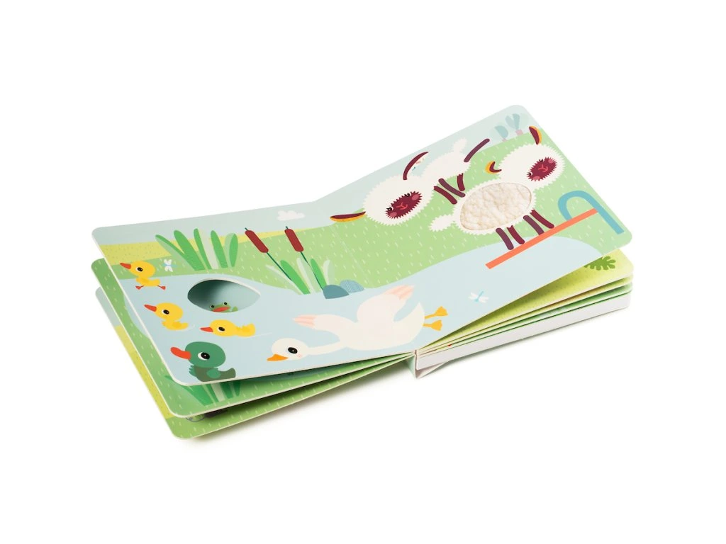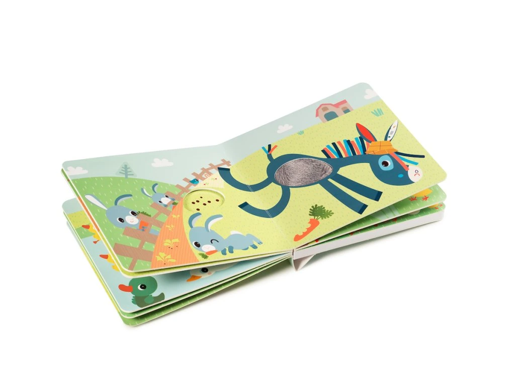 Vydejte se s dětmi na statek plný dotyků a zvuků. Krásně ilustrované leporelo s hmatovými prvky a zvukem promění listování v smyslové dobrodružství – společně pojmenováváte zvířata a poznáváte je podle toho, co slyšíte. Knížka přirozeně rozvíjí sluch, hmat, představivost i pozornost, ideální pro první „čtení“ s rodiči. Doporučeno přibližně od 12 měsíců.