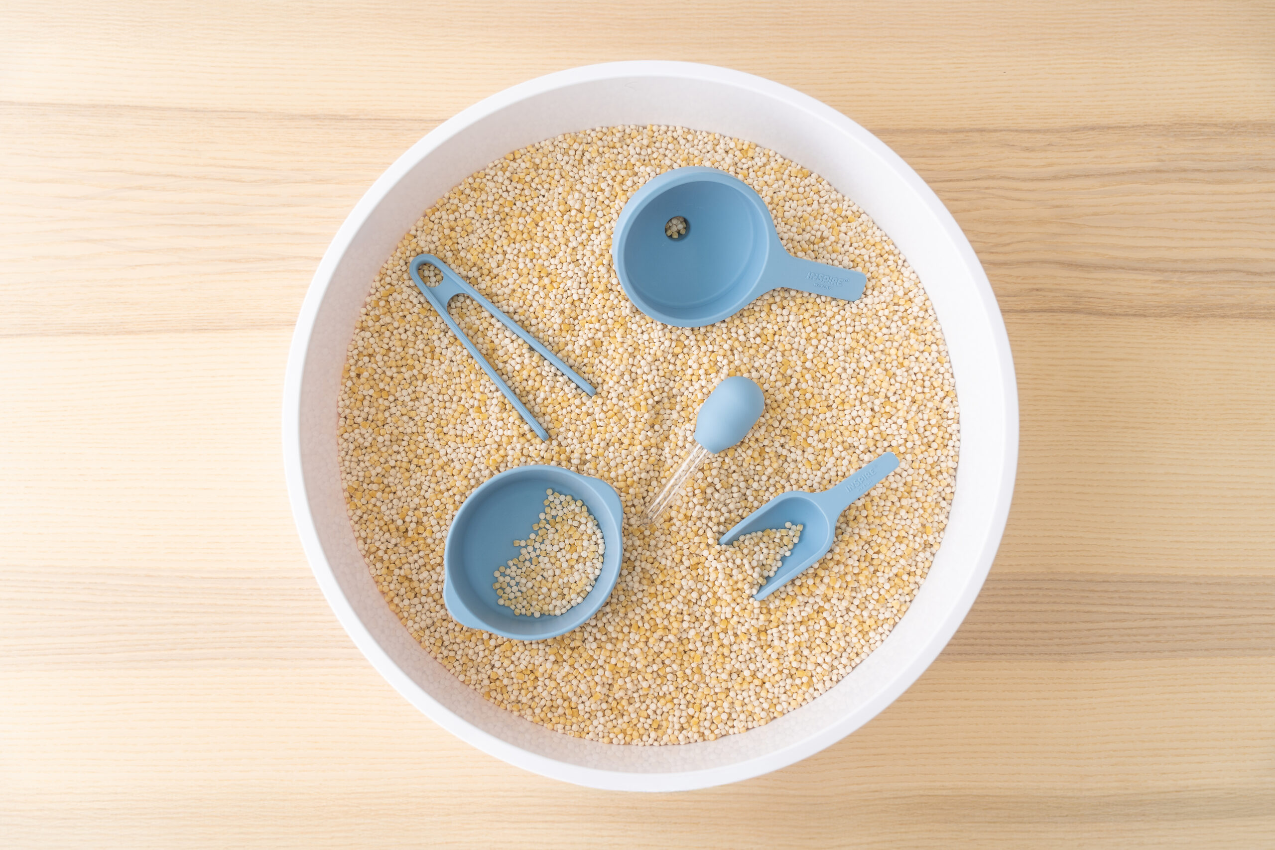 • Jemnou motoriku a koordinaci rukou a očí – manipulace s miskou, naběračkou, pinzetou či trychtýřem podporuje přesnost.