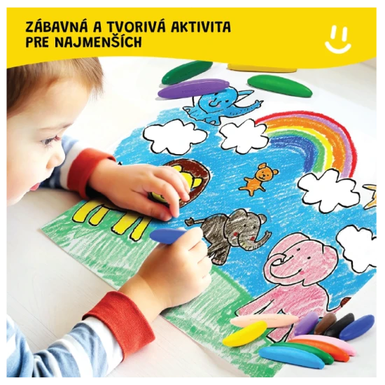 Již od 18 měsíců jsou tyto voskovky vhodné pro nejmenší začátečníky v kreslení – díky bezprašnému složení a bezpečným materiálům představují ideální dárek pro drobné tvůrce.