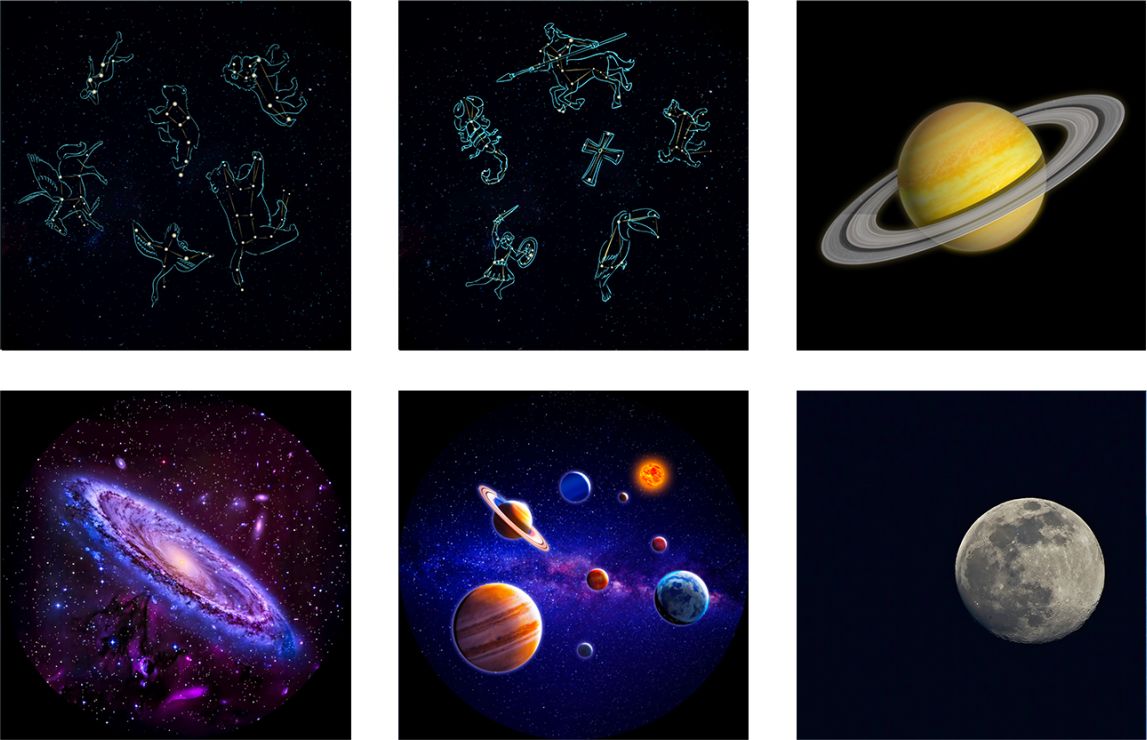 - projekce hvězd a planet