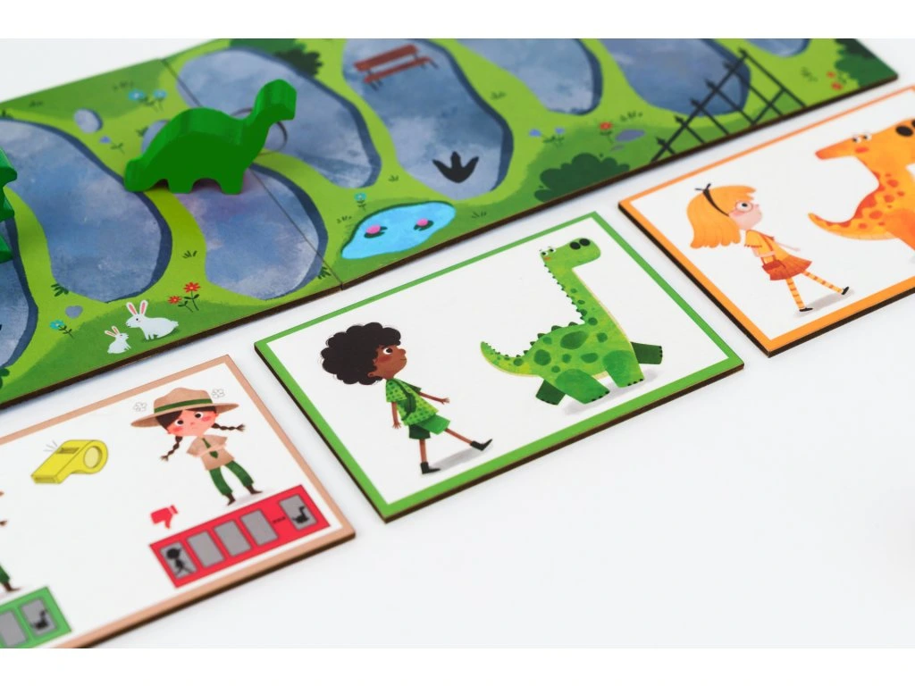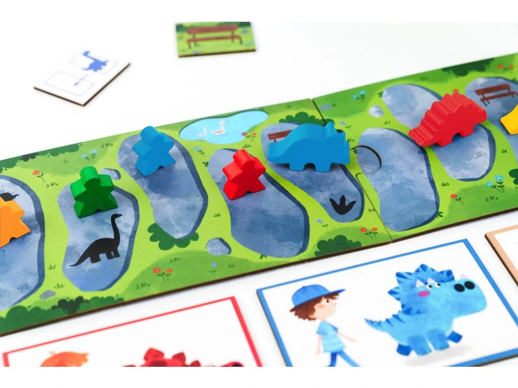 Kiwizou Dinosauří závody je veselá a napínavá desková hra pro děti, která promění obývák v divoký dinosauří park. Hráči startují se svým dinosaurem a jejich cílem je dostat ho jako první k bráně parku. Během hry čekají na děti šikovné figurky dinosaurů i jejich pánů, kostka a hrací deska složená ze tří částí — vše jednoduché a přehledné, takže i malé děti snadno pochopí pravidla. Hra je navržena pro 2 až 4 hráče a trvá zhruba 15 minut, hodí se proto i pro menší děti s kratší délkou pozornosti. Díky milým ilustracím, zábavnému tématu a rychlému tempu se hra rychle stává oblíbenou volbou pro rodinné hraní a společné chvíle s kamarády.
