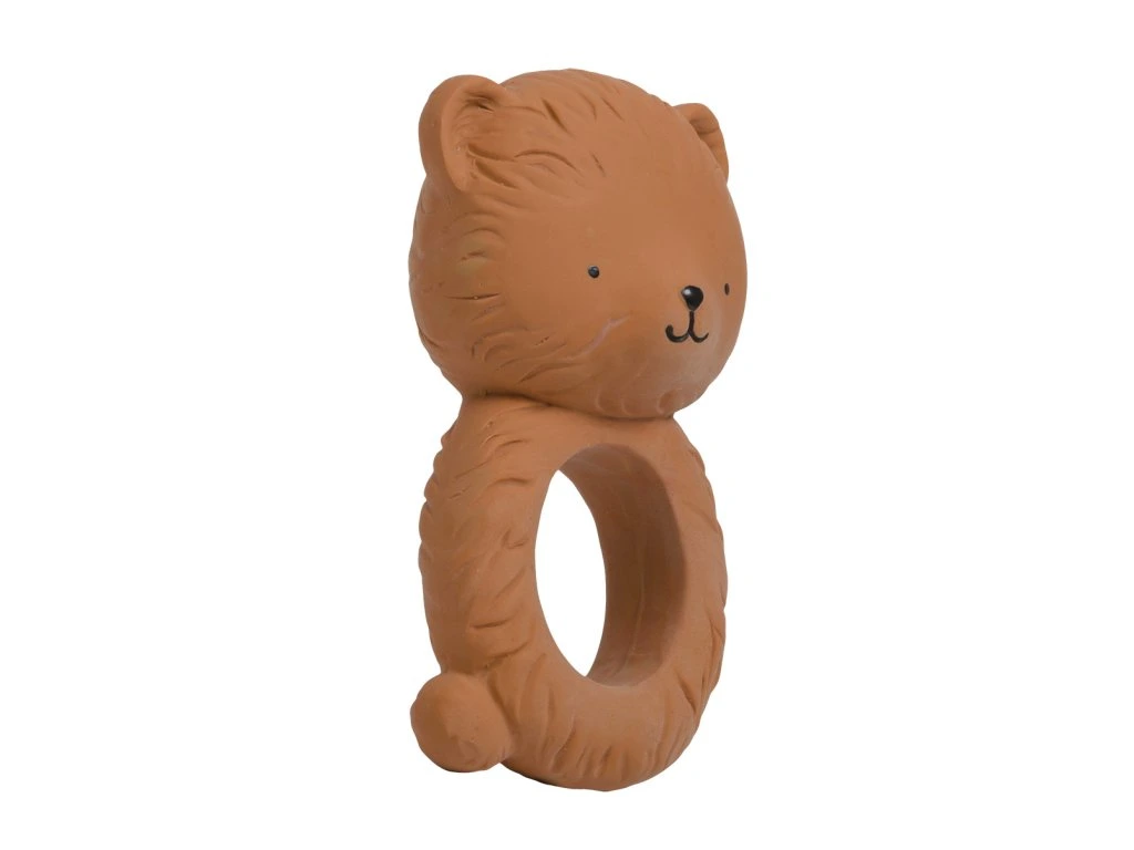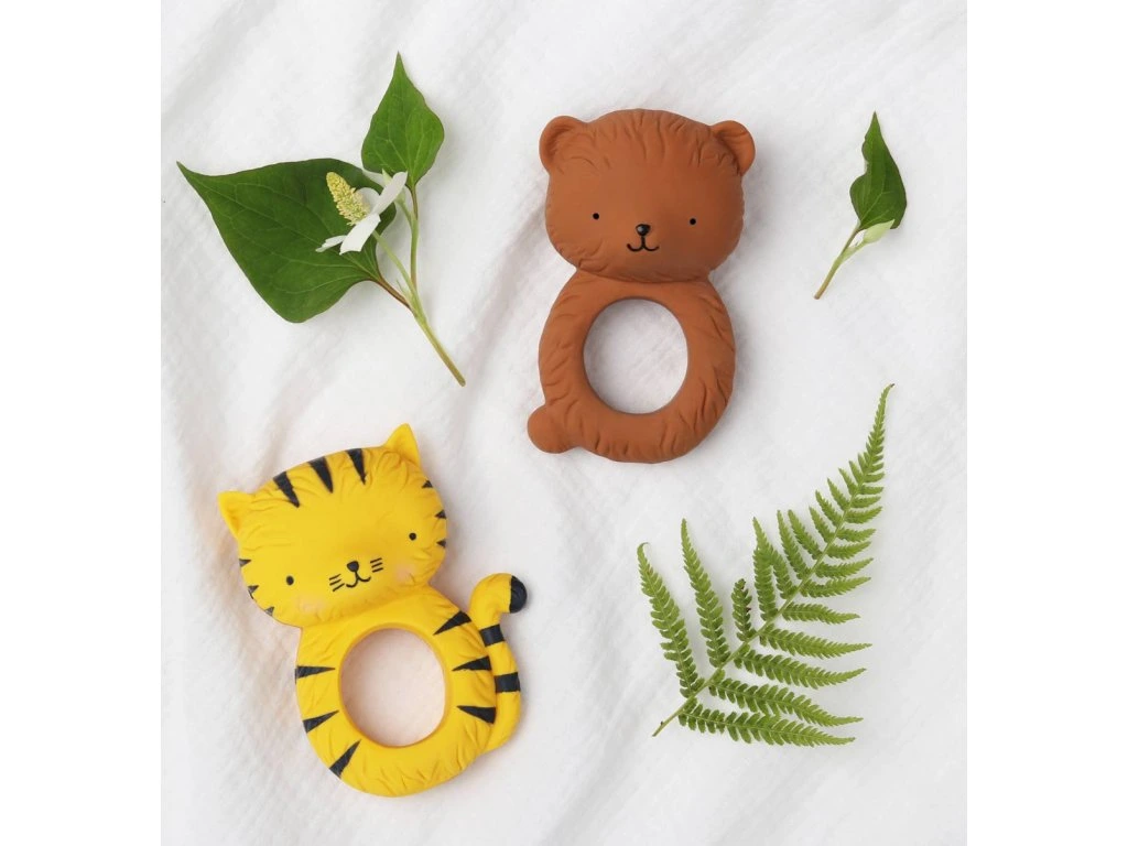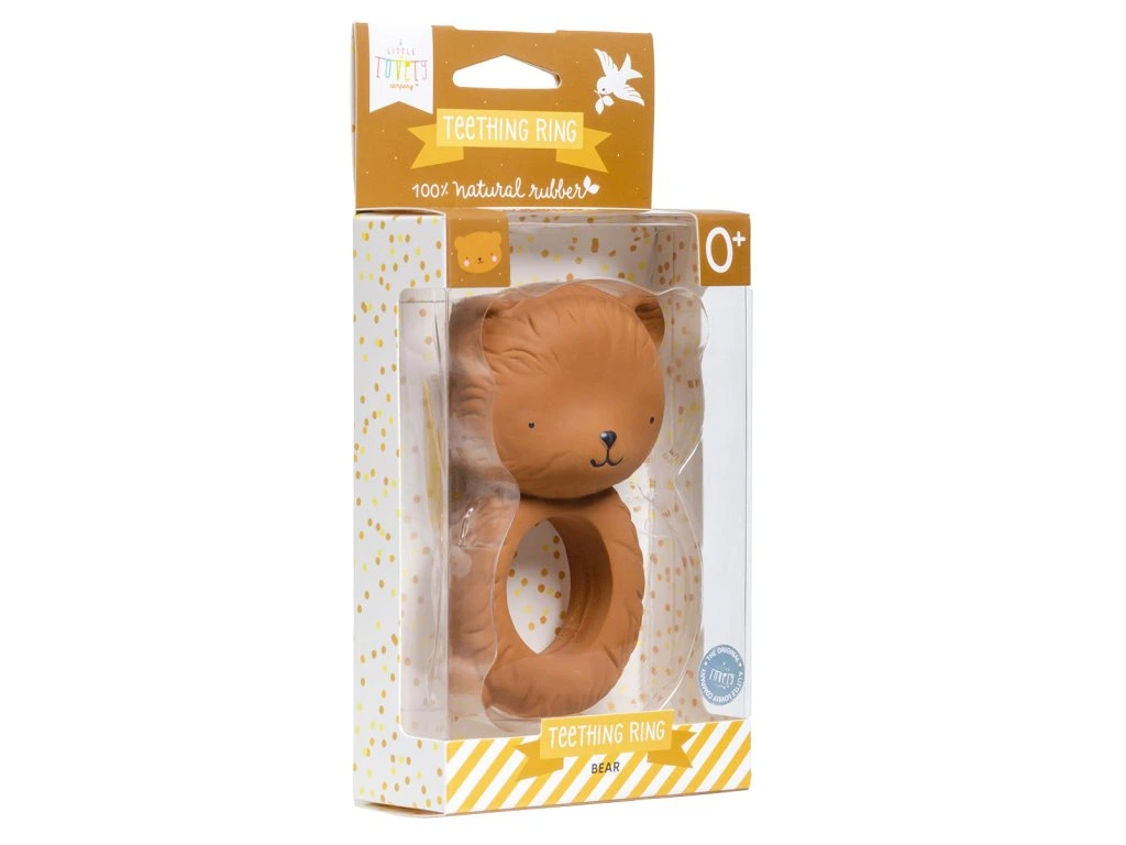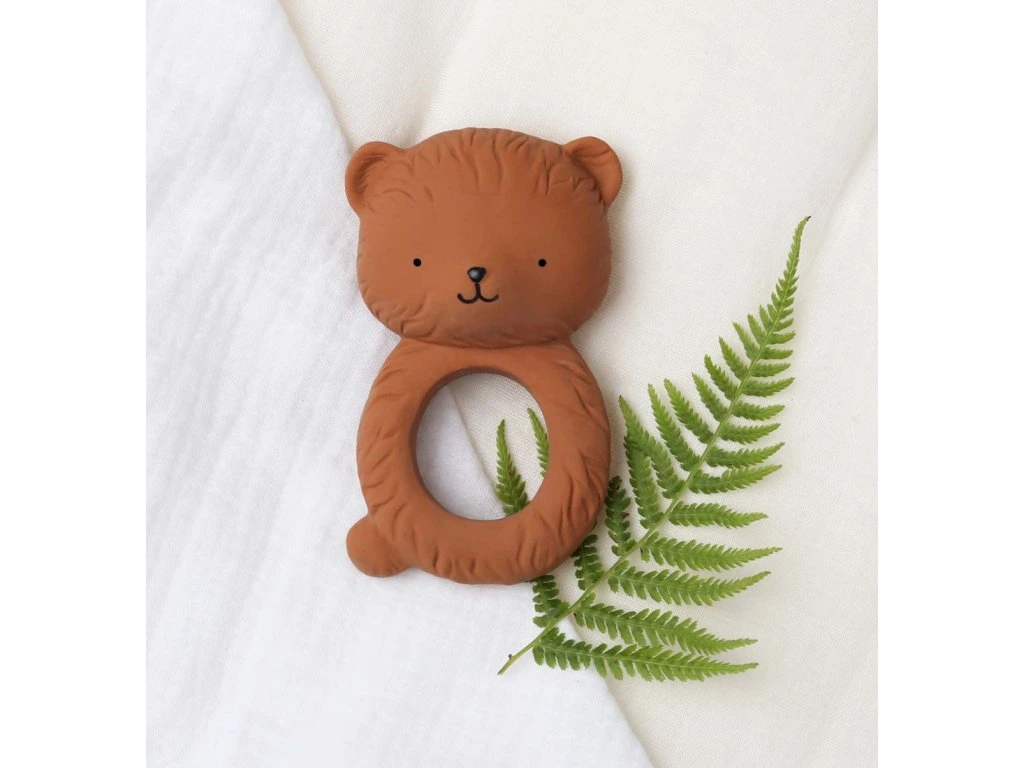 Roztomilé kousátko ve tvaru medvídka uleví citlivým dásním a zároveň zabaví miminko v období růstu prvních zoubků. Je vyrobené ze 100% přírodního kaučuku ze stromu Hevea, je měkké, poddajné a příjemné do malých ruček. Díky hladkému i jemně strukturovanému povrchu masíruje dásně a pomáhá zmírnit nepohodlí při prořezávání. Minimalistický tvar bez otvorů se snadno čistí – stačí opláchnout mýdlovou vodou a otřít. Skvělý tip i jako drobný dárek pro čerstvé rodiče.