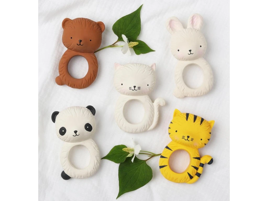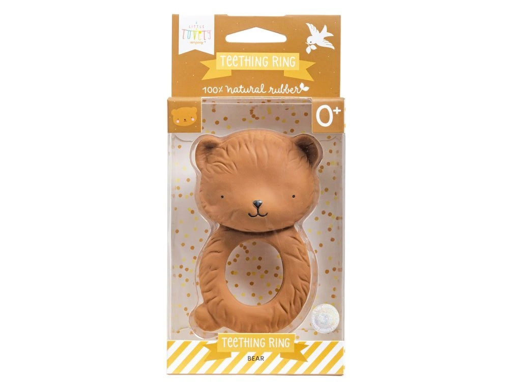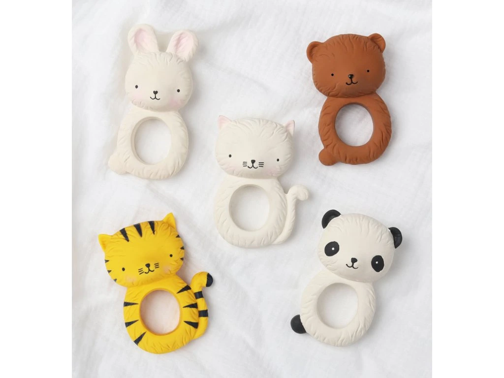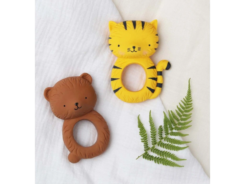 Roztomilé kousátko ve tvaru medvídka uleví citlivým dásním a zároveň zabaví miminko v období růstu prvních zoubků. Je vyrobené ze 100% přírodního kaučuku ze stromu Hevea, je měkké, poddajné a příjemné do malých ruček. Díky hladkému i jemně strukturovanému povrchu masíruje dásně a pomáhá zmírnit nepohodlí při prořezávání. Minimalistický tvar bez otvorů se snadno čistí – stačí opláchnout mýdlovou vodou a otřít. Skvělý tip i jako drobný dárek pro čerstvé rodiče.