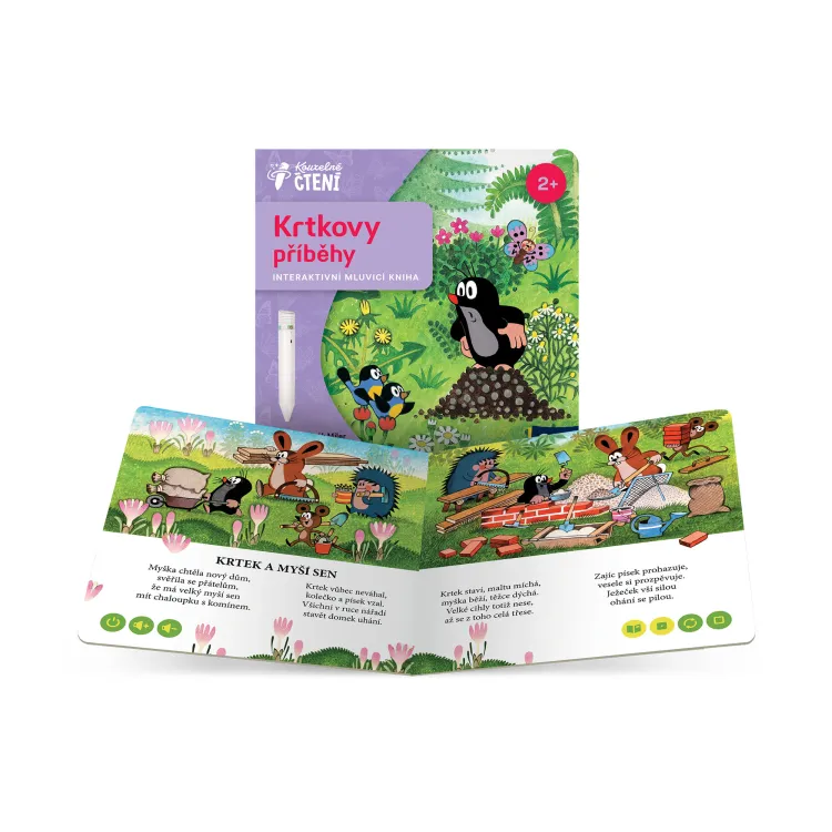 - Edukativní prvky — kromě poslouchání příběhů podporuje rozvoj jazykových dovedností, pozornosti a radosti ze čtení ve spolupráci s interaktivní tužkou.