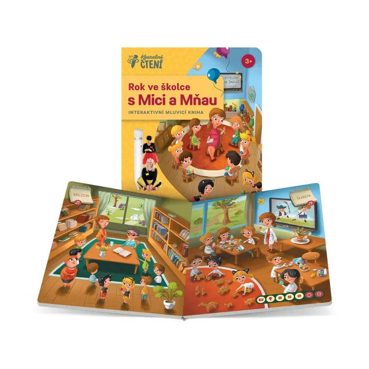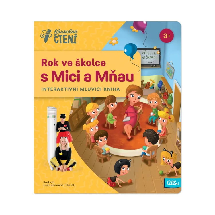 Kniha Rok ve školce s Mici a Mňau z edice Albi Kouzelné čtení je interaktivní mluvící kniha, která děti hravě provádí celým rokem ve školce pomocí dvou roztomilých kočičích průvodců – Mici a Mňau. Každý měsíc děti čekají veselé tematické písničky a příběhy z běžného školkového života, ve kterých se seznamují s aktivitami, pravidly i radostmi dne ve školce. Interaktivita knihy spočívá v tom, že dotykem Albi elektronické tužky se spustí více než 1 600 zvukových stop – písničky, texty, názvy i další audio prvky, které doplňují ilustrace a texty a dělají z učení zábavný zážitek. Na poslední dvoustraně navíc najdou děti hra „Mici a Mňau, nezlobte se“ s dalšími zábavnými aktivitami. Tato kniha je vhodná pro děti od 3 let a skvěle je připravuje na každodenní školkový život.