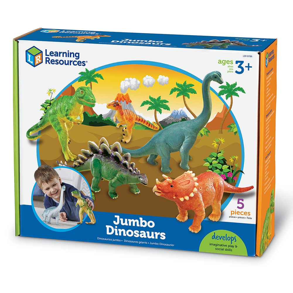 Tato sada Jumbo Dinosaurs nabízí velké, detailní a odolné figury, které přenášejí děti do světa dinosaurů plného dobrodružství a učení. Skvělé pro malé ruce a velké nápady!