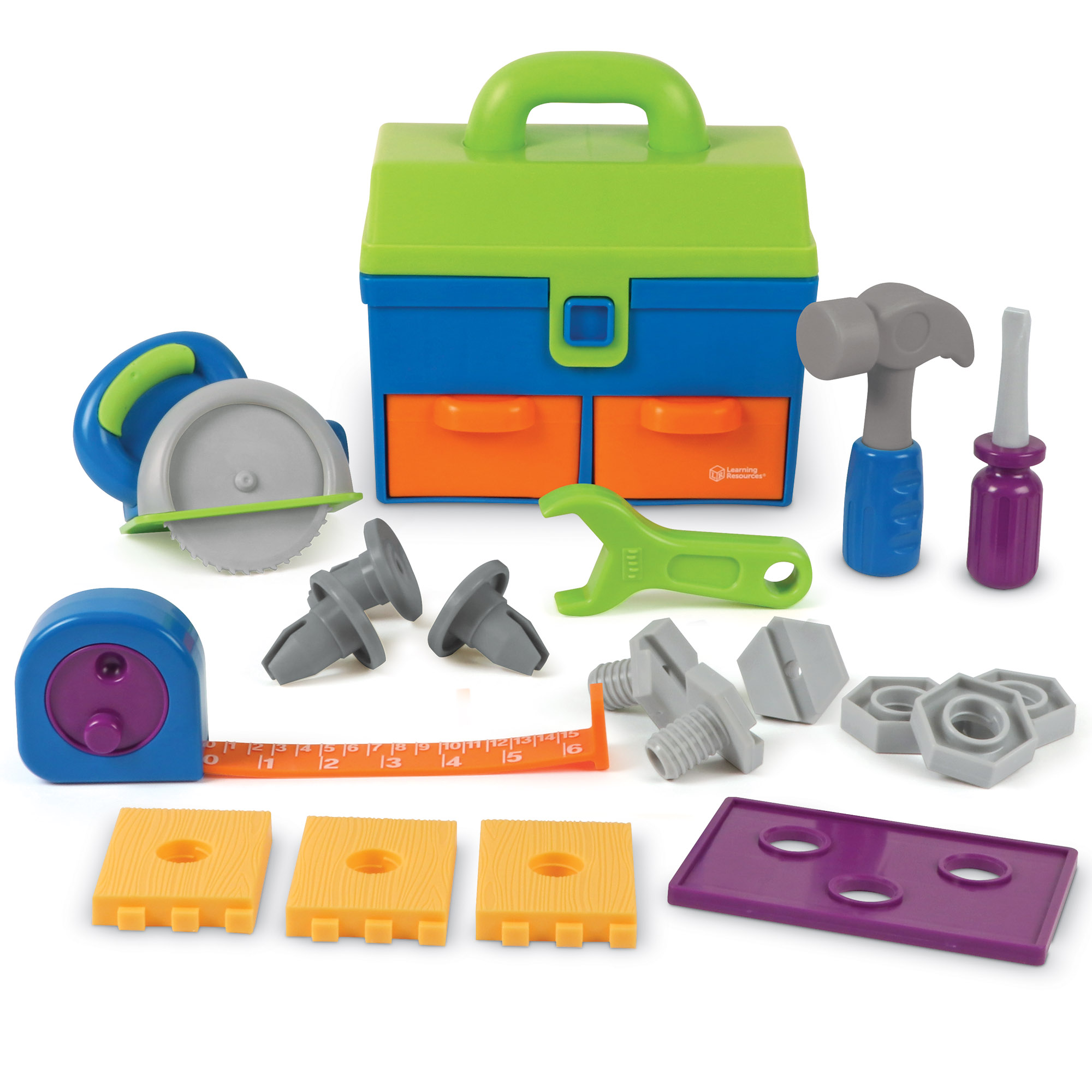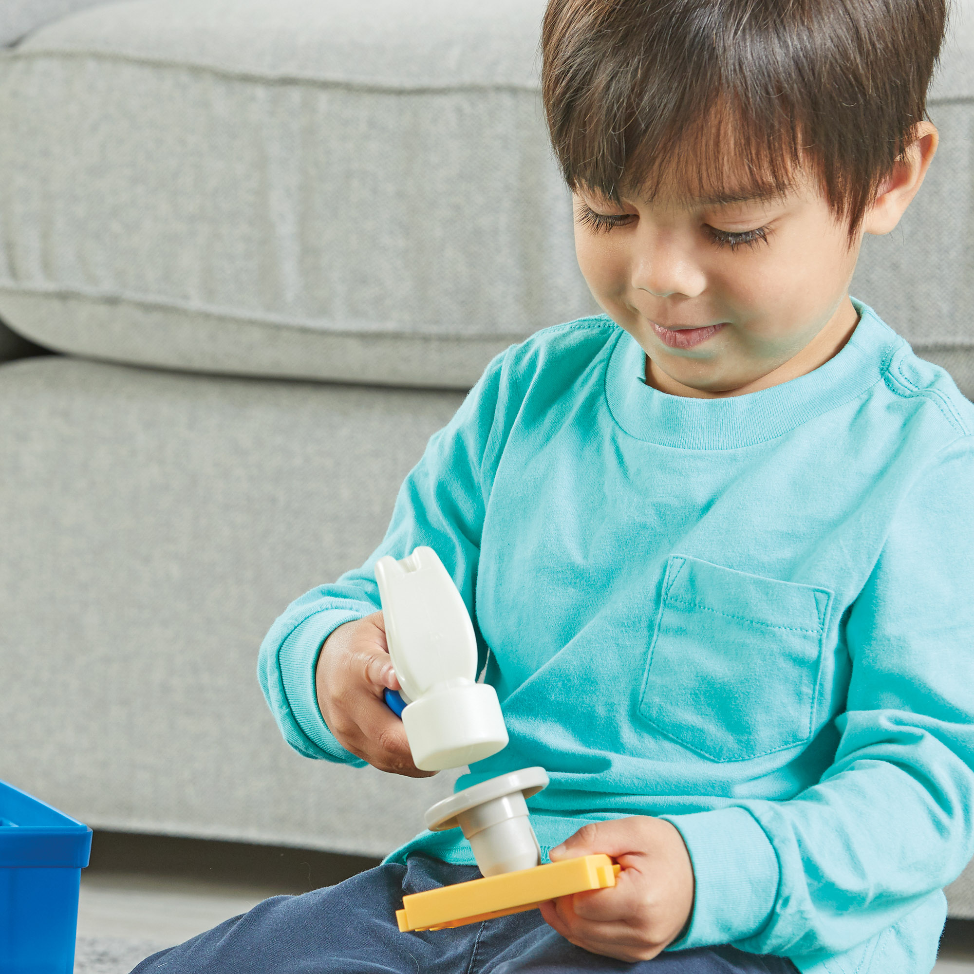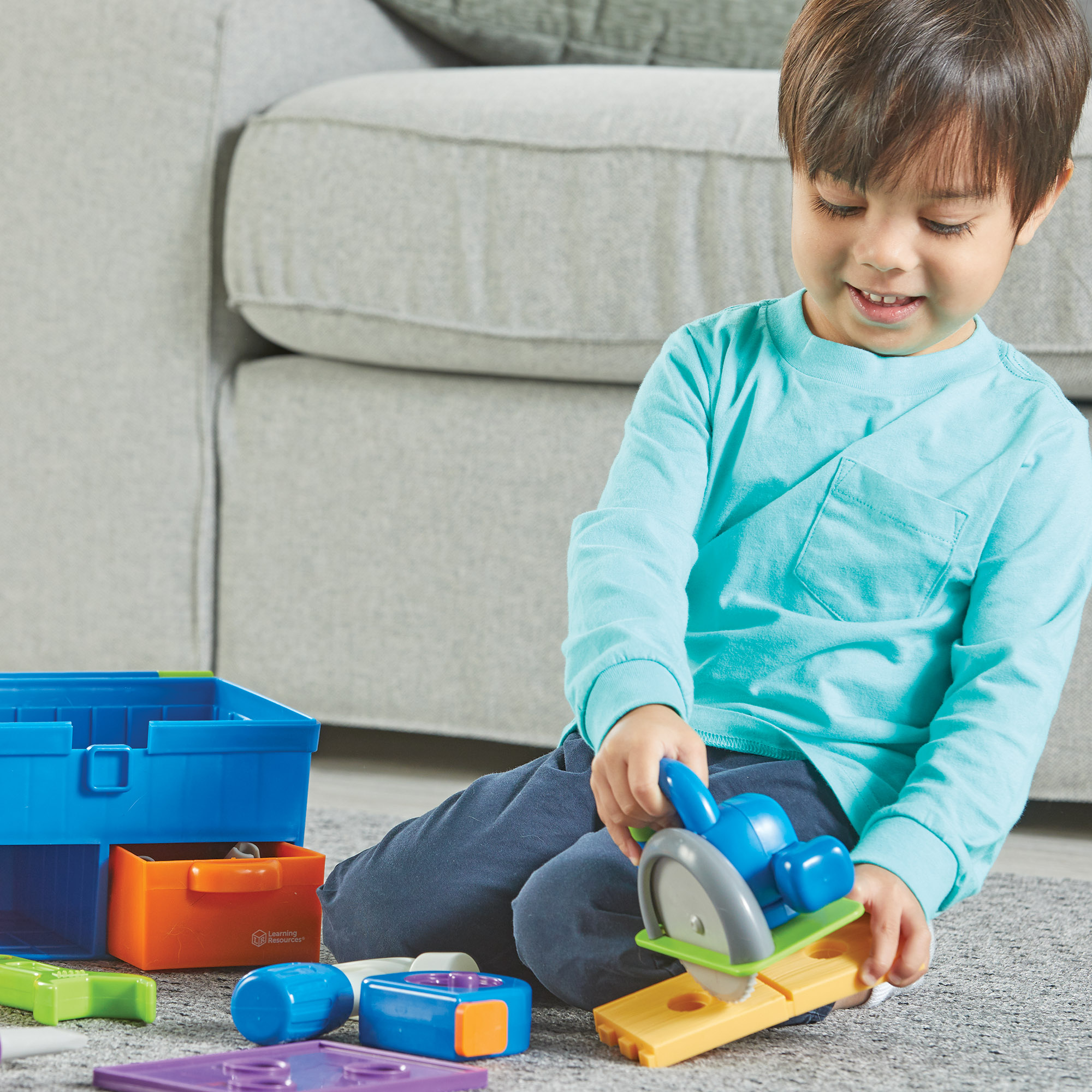 Learning Resources: New Sprouts All-in-One Toolbox je dokonalá sada pro malé kutily, kteří chtějí objevovat svět nářadí zábavnou a bezpečnou formou. Děti si při hře procvičují jemnou motoriku, koordinaci a představivost. Všechny díly jsou přizpůsobené dětským rukám a vyrobené z kvalitního, zdravotně nezávadného plastu. Po skončení hry lze všechny nástroje přehledně uložit do praktického kufříku. Skvělý dárek pro malé opraváře, kteří se učí hrou!