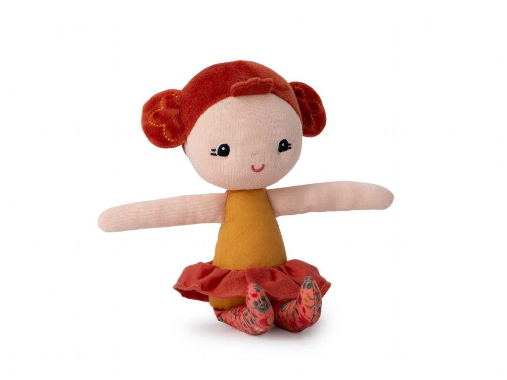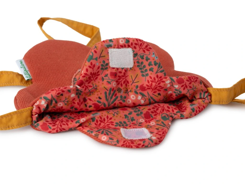 Textilní kabelka ve tvaru květiny s panenkou Adèle je roztomilý doplněk pro děti od 12 měsíců. Díky suchému zipu a popruhu přes rameno se snadno používá a láká k prvnímu nošení pokladů i ke hře na role. Vyrobena je z recyklovaného polyesteru a bavlny, měří 22 × 21,5 × 6 cm a pere se na 30 °C (jemně). Skvělý tip na dárek, který rozvíjí představivost a samostatnost.