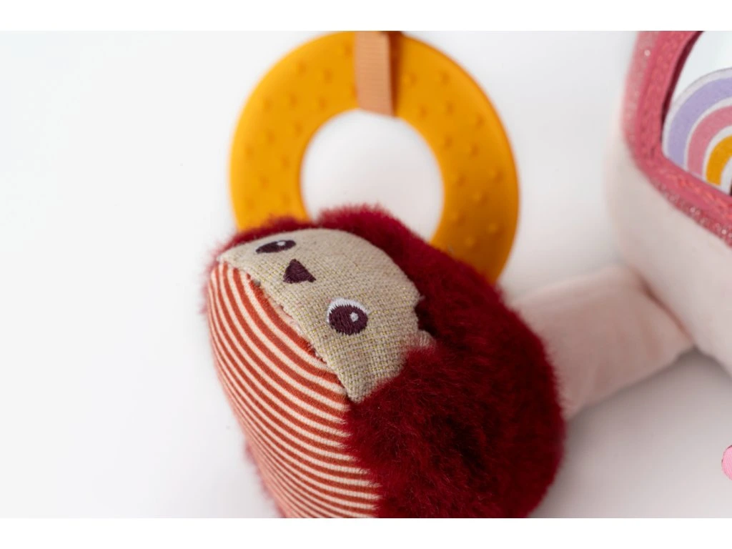 Kouzelný jednorožec Lena probouzí všechny dětské smysly. Na bříšku má zrcátko s duhou, v křidélkách schované šustítko, v „beruškové“ tlapce chrastítko a v druhé měkké kousátko s jemnými výstupky pro úlevu při prořezávání zoubků. Rozmanité textury a štítky lákají k dotýkání a zkoumání, křidélka navíc slouží jako snadno uchopitelná madla. Vhodné od 9 měsíců.