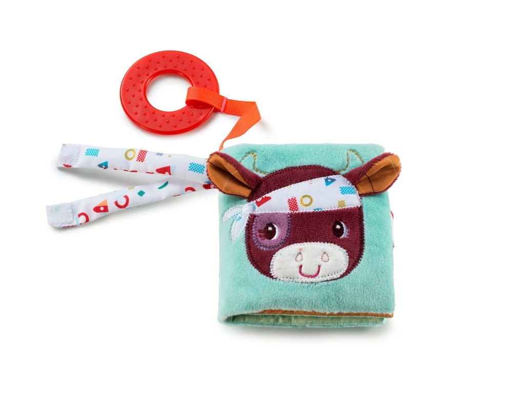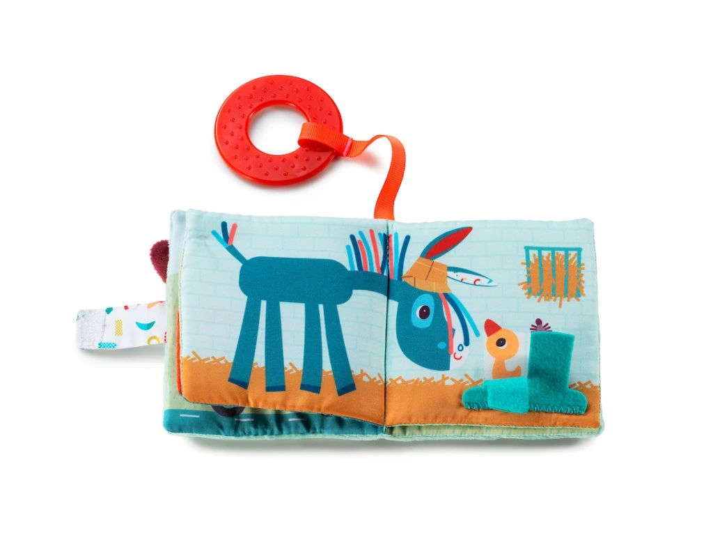 Potěšte své miminko krásně ilustrovanou textilní knížkou s motivy ze života na farmě. Je ideální pro děti od 6 měsíců a díky veselým obrázkům a hravým prvkům zaujme každé batole. Knížka obsahuje šusticí prvky, kousátko a různé textury, které stimulují zrak, sluch i hmat. Praktické poutko na suchý zip umožní snadné zavěšení na kočárek nebo postýlku. Je tak ideální na doma i na cesty.