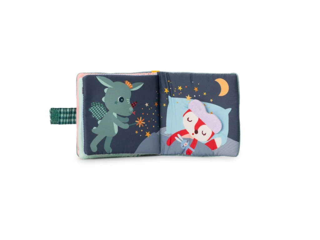Lilliputiens: textilní knížka s kousátkem Kouzelník dráček Joe