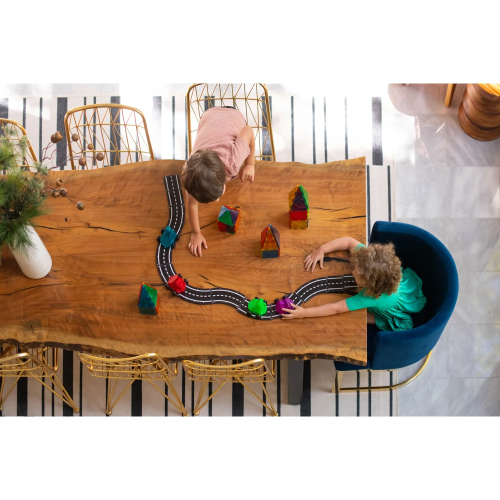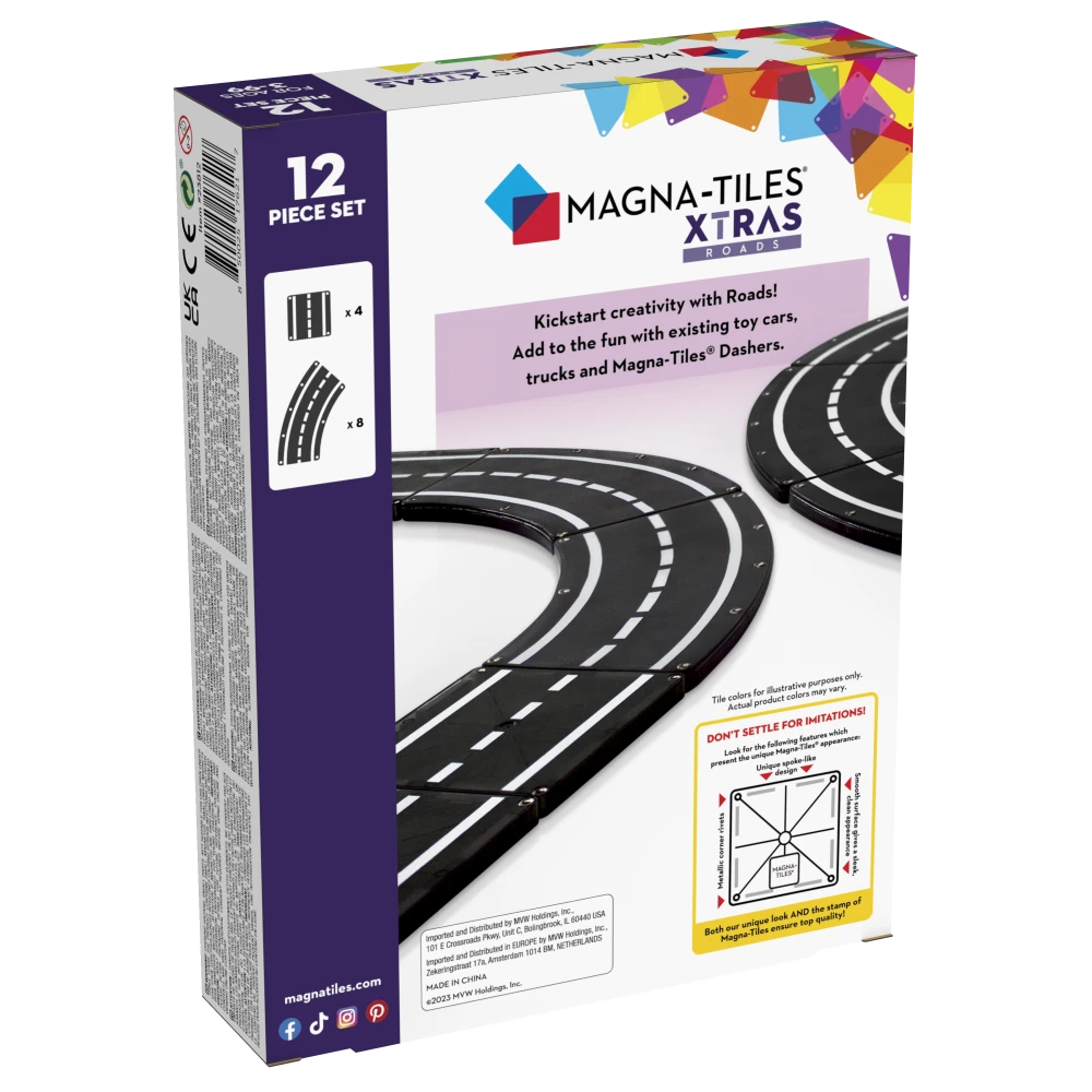Sada obsahuje 12 magnetických dílků – 8 zatáček (45°) a 4 silniční čtverce, které lze libovolně kombinovat s ostatními sadami MAGNA-TILES. Spojením s dalšími stavebnicemi vznikají celé městské projekty, staveniště nebo závodní tratě plné fantazie.