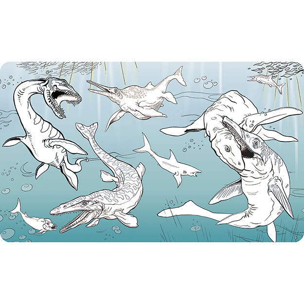 Kouzelná vodní „omalovánková“ knížka s dinosaury. Stačí naplnit přiložené pero vodou, přejet po obrázku a barvy se samy objeví. Po uschnutí zase vyblednou, takže děti mohou malovat pořád dokola – čistě, bez barev a bez nepořádku.