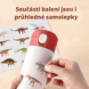 - Arch se 11 barevnými samolepkami s různými druhy dinosaurů a jejich popisem, pro rozšíření znalostí a motivaci.