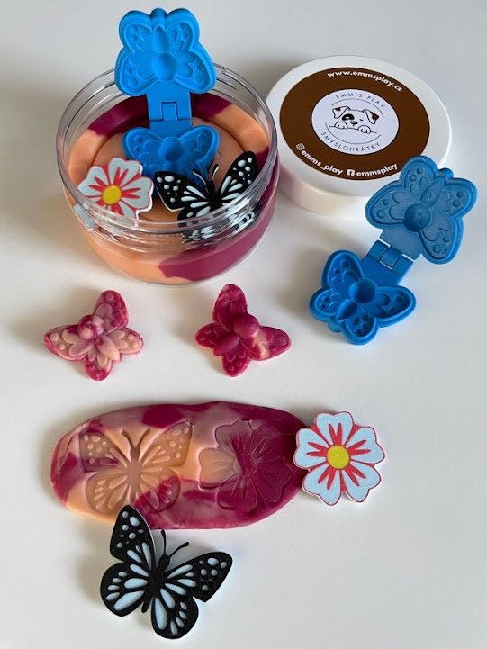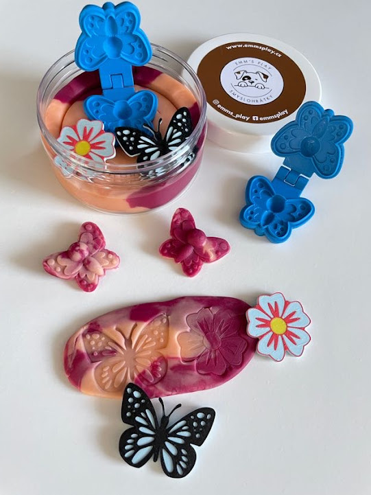 K tvoření můžete využít přiloženou modelínu, ale také samotvrdnoucí hmotu či kinetický písek. Motýlky ze samotvrdnoucí hmoty si můžete libovolně zdobit a pak je darovat jako malý dárek rodině či kamarádům.