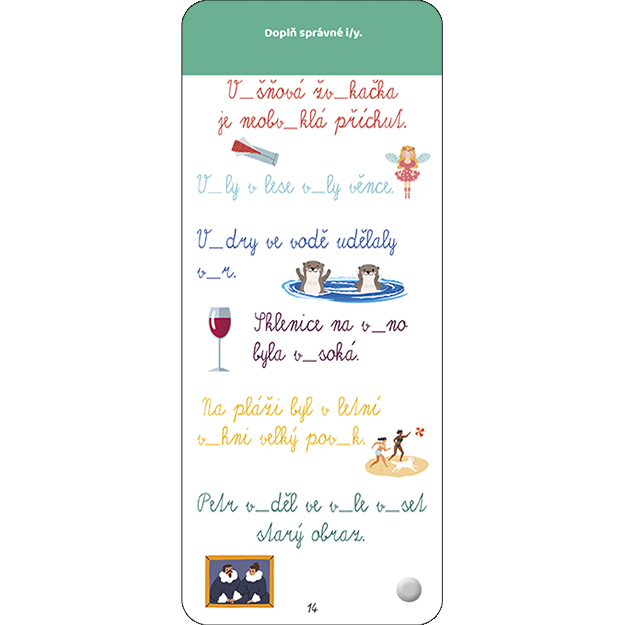 - 20 oboustranných stíratelných kartiček s úlohami na vyjmenovaná slova, ideální pro opakování a procvičování.