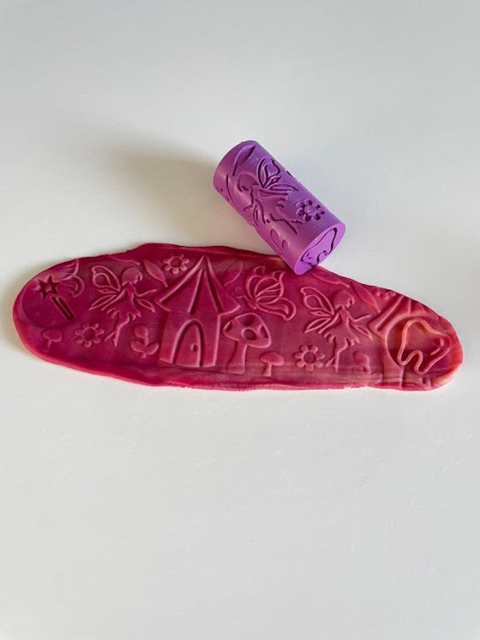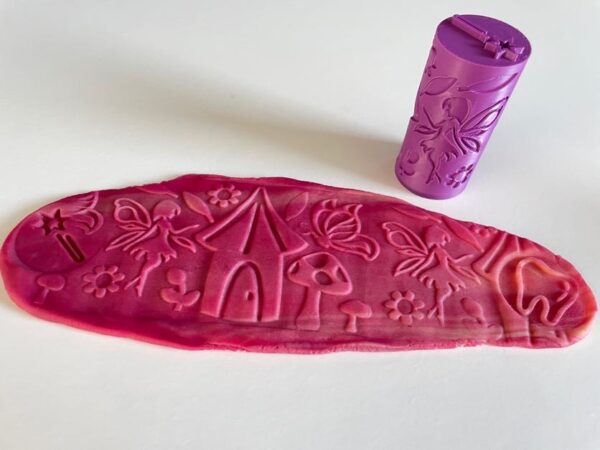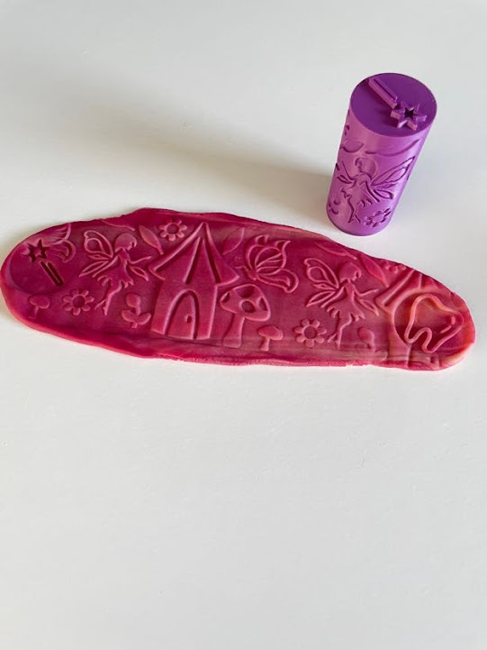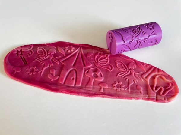 Ideální je, doplnit obtiskovací váleček jednobarevnou modelínou. Naše ručně vyráběná modelína je měkká, jemná, pružná a nelepivá s jemnou vůní. Ideální na krájení, vykrajování, obtiskování, stříhání, modelování …