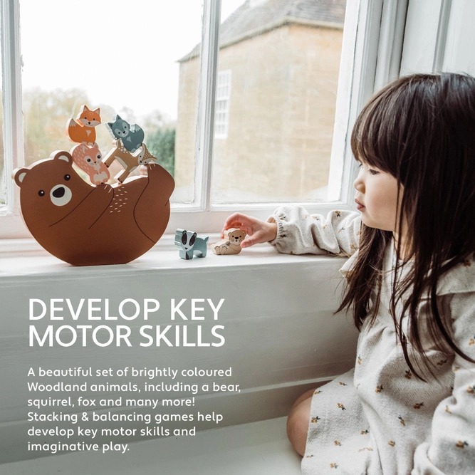 Zábavná dřevěná balanční hra s lesní tematikou, která prověří dětskou trpělivost i šikovnost. Úkolem je skládat jednotlivá lesní zvířátka na základnu (medvěda) tak, aby se celá konstrukce nepřevrhla. Každý další kousek je malou výzvou a děti rychle pochopí, že k úspěchu vede soustředění a cit pro rovnováhu.
