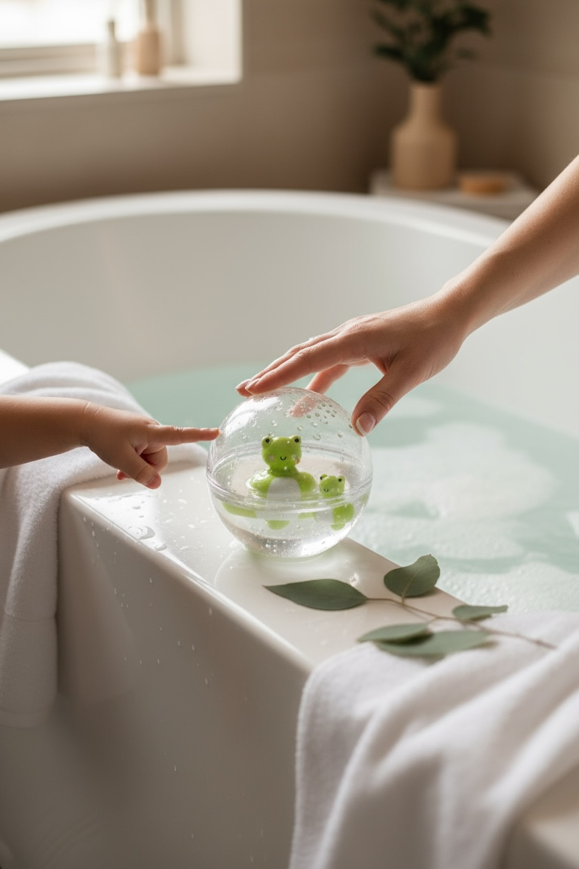 Happy Bubble Froggies rozvíjí dětskou zvídavost přirozenou a hravou formou. Děti mohou bubliny otáčet, třást s nimi nebo sledovat jejich pohyb na vodní hladině. Veselé barvy a pohybující se postavičky přinášejí radost i uklidnění – ideální aktivita do koupelny i na cesty.