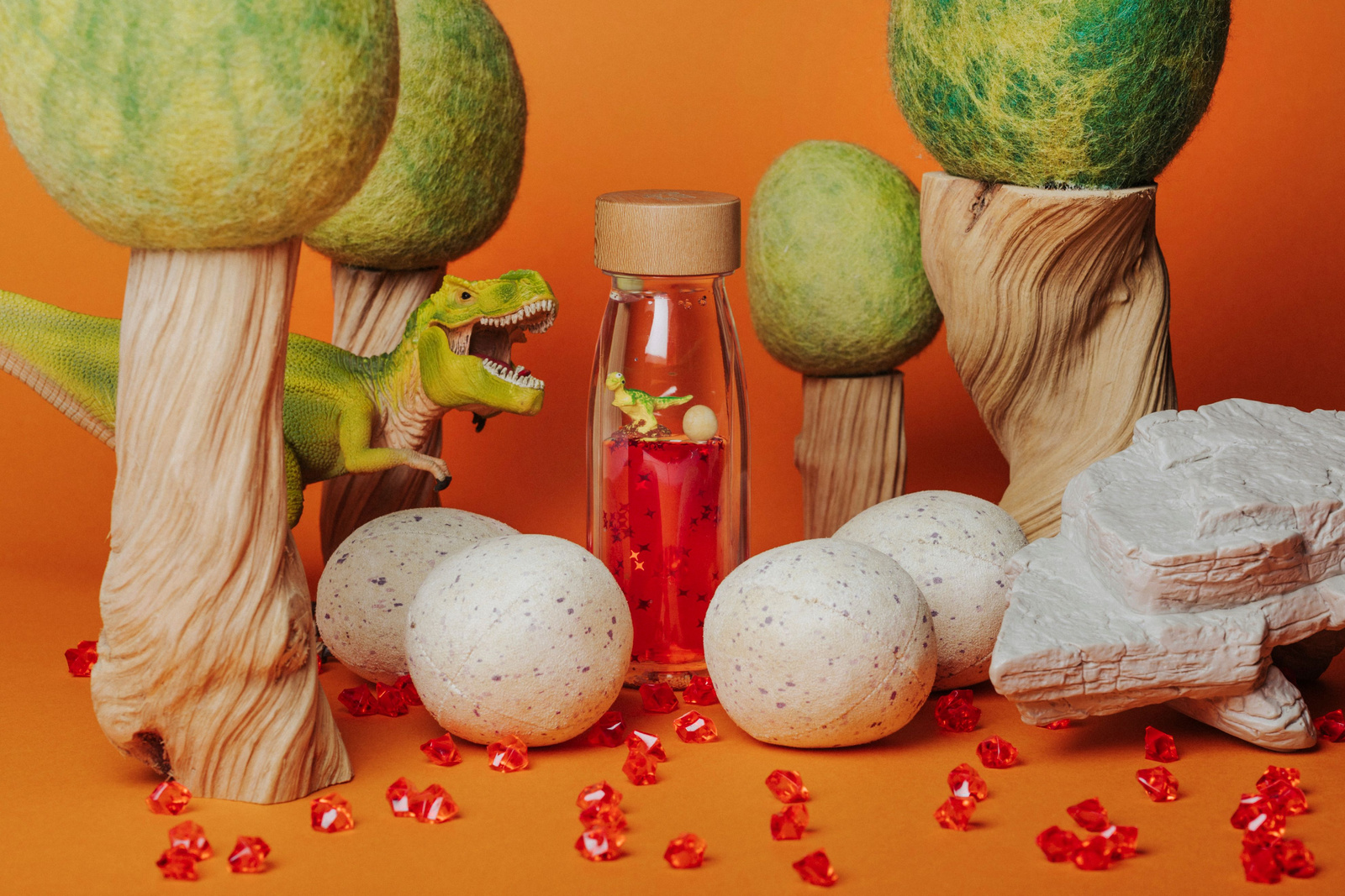 Láhve MOVE od Petit Boum jsou pozvánkou pro děti, aby se ponořily do světa snů a barev. Král dinosaurů, T. rex, se právě vylíhl ze svého vejce a majestátně se tyčí uvnitř naší jedinečné smyslové lahvičky Move. Vstup do pravěkého světa plného zábavy a objev kouzelné okamžiky ukryté v každé lahvičce MOVE!