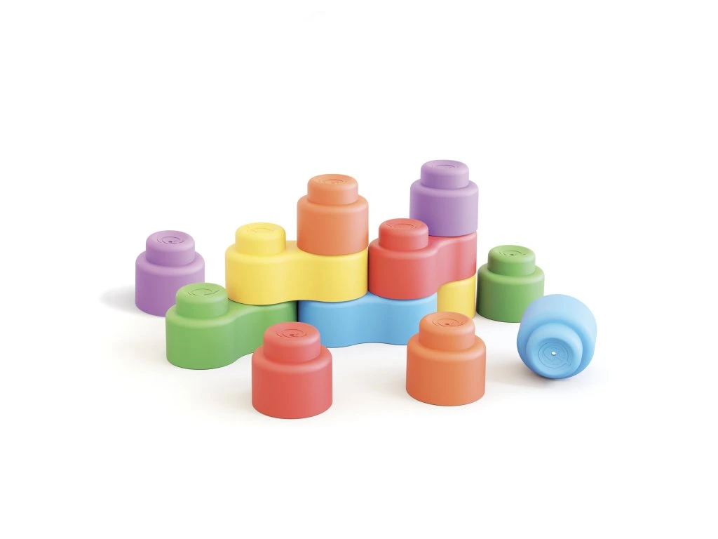 - Velké, měkké, bezpečné tvary, vhodné pro malé ručky — snadno uchopitelné a stohovatelné, bez ostrých hran.