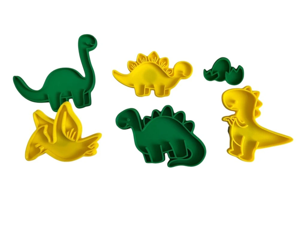 Zábava s dinosaury! Varianta 2v1 funguje jako razítko a současně má okraj na vykrojení, takže během chvilky vytlačíte reliéf a hned jej i čistě vyříznete. Ideální k plastelíně, kinetickému písku a podobným hmotám – pro prehistorické kostry dinosaurů. Na zadní straně je praktická černá úchytka pro snadné držení i dětskými prsty.