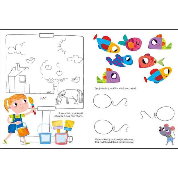 Sešit aktivit Barvy a tvary od JIRI MODELS je zábavný a poučný pracovní sešit určený především předskolním dětem. Tento sešit obsahuje 32 stran plných tematických úkolů, které pomáhají dětem poznávat a procvičovat základní barvy a tvary hravou formou – ideální pro rozvoj jejich pozornosti, logického myšlení a vizuálního vnímání. Veselé ilustrace a různorodé úkoly dělají z učení barev a tvarů zábavu, která děti motivuje k dalšímu objevování. Sešit je vhodný pro děti zhruba od 3 let a lze ho používat doma i jako doplněk přípravy na školní docházku.
