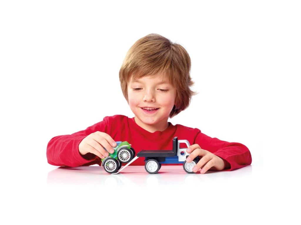 Magnetická stavebnice SmartMax je chytrá hračka, která děti zábavnou formou učí novým dovednostem. Díly jsou dostatečně velké, robustní a snadno uchopitelné, takže se s nimi dobře manipuluje i nejmenším dětem. Sada je ideální pro děti od 2 let a umožňuje sestavit různá vozidla – například hasičský vůz, buldozer, vysokozdvižný vozík, odtahový vůz nebo pick-up truck.