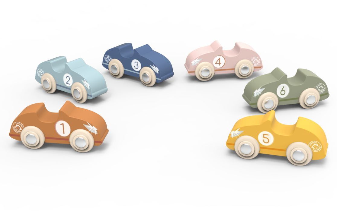 Dřevěná Racing Cars od Speedy Monkey jsou malá pastelová autíčka pro první závody doma. Snadno se drží a jsou ideální pro děti od 12 měsíců. Rozvíjejí jemnou motoriku, koordinaci i fantazii při symbolické hře. Vyrobená z dřeva s FSC® certifikací. Údržba je jednoduchá – stačí vlhký hadřík.