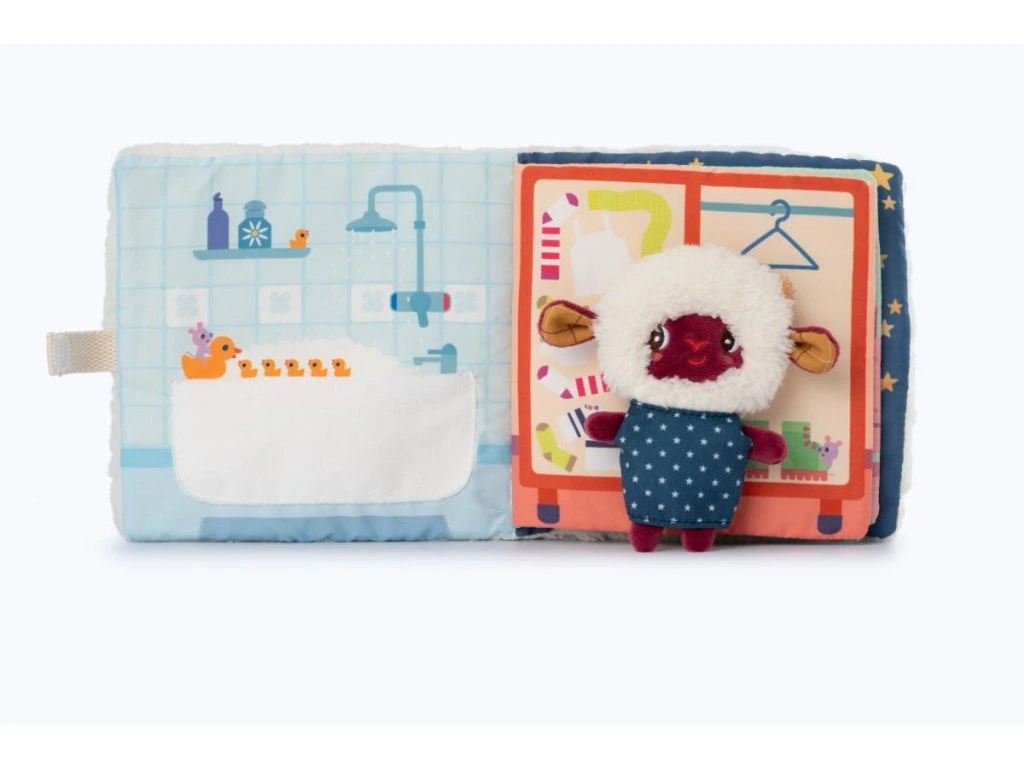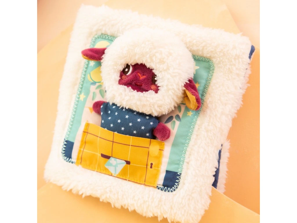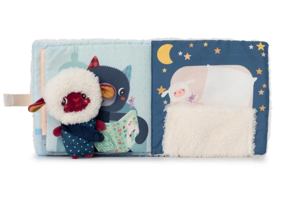 Lilliputiens – Textilní knížka s prstovou loutkou: Dobrou noc s ovečkou Yvon