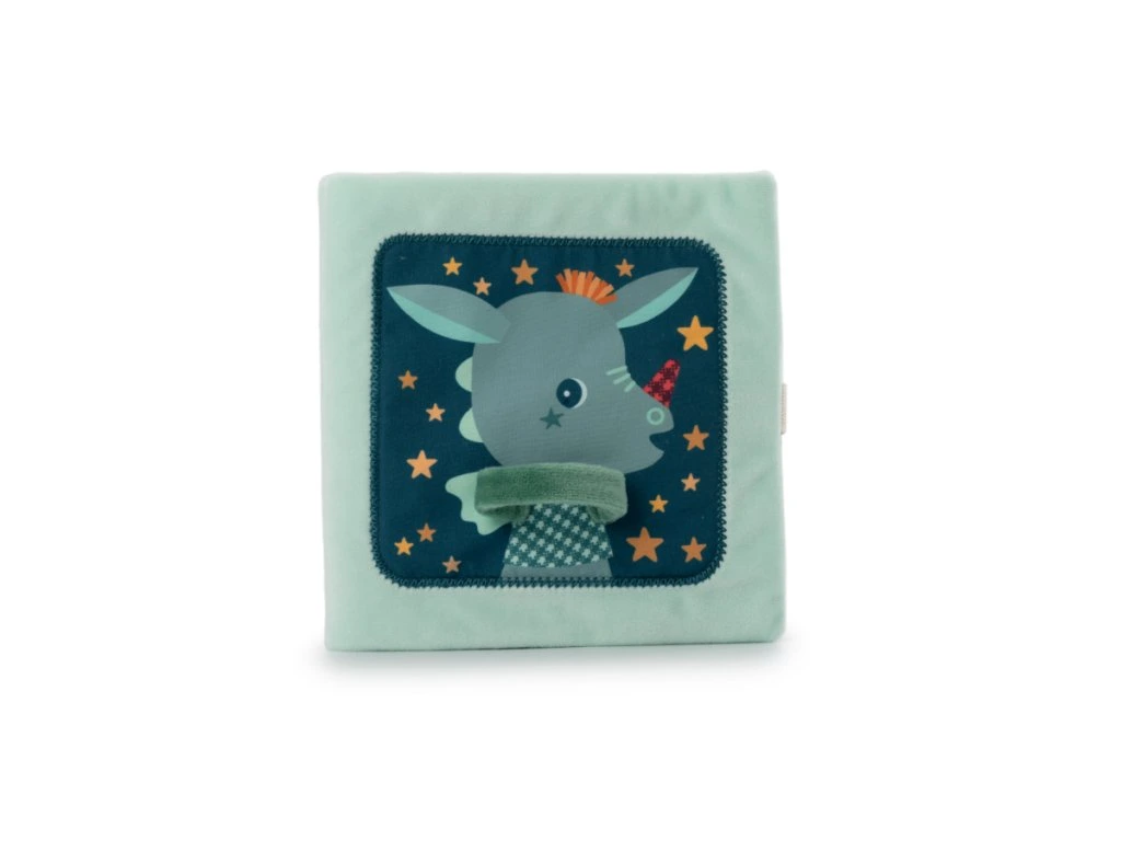 Lilliputiens – Textilní knížka s aktivitami: Dráček Joe a jeho muchláček