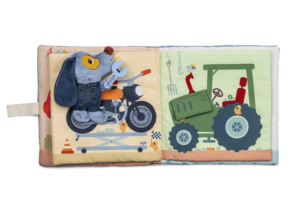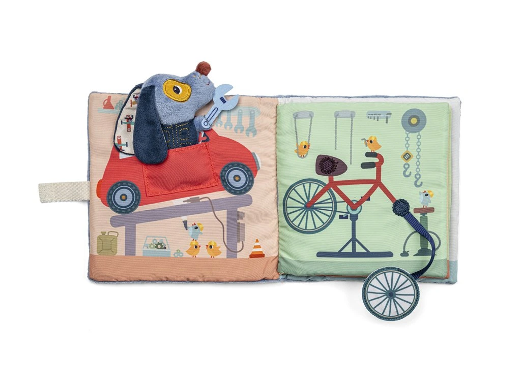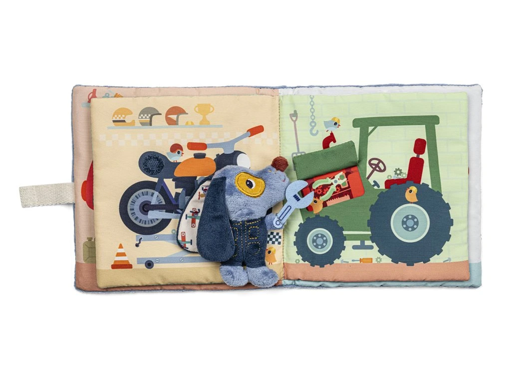 Lilliputiens – Textilní knížka: Pejsek Jules v garáži