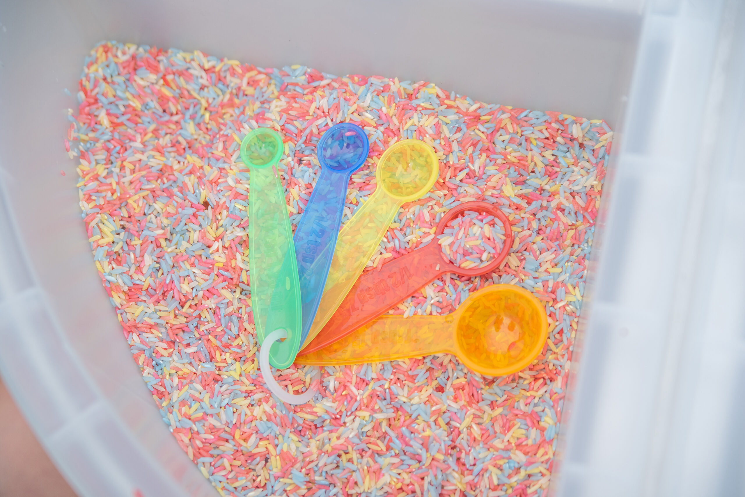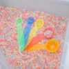Průsvitné barvy pomáhají dětem vizuálně sledovat manipulaci s materiály a poskytují další stimulaci smyslů při hře s vodou či pískem. Lžičky do sebe snadno zapadají pro snadné skladování a manipulaci.