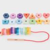 TickiT: Dřevěné duhové navlékací tvary – 28 ks + šňůrka