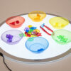 Díky magnetickému konektoru s ochranou proti zakopnutí a třem úrovním jasu poskytuje chladné, čisté a jasné podsvícení, ideální pro zkoumání světla, barev a tvarů nebo pro soustředěnou skupinovou práci v široké škále aktivit. Extrémně tenký design se zaoblenými hranami zajišťuje, že světelné panely tickit® jsou odolné, přenosné a snadno se čistí. Jednoduché ovládání s funkcí zámku zabraňuje nechtěnému vypnutí.