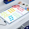 Barevné rybky od TickiT pro počítání, třídění, vytváření vzorů a použití v jednoduchých matematických činnostech (sčítání, odčítání, dělení nebo násobení). Díky průsvitným barvám jsou ideální pro použití na světelném panelu a detailní prvky poskytují sadě hmatový prvek.